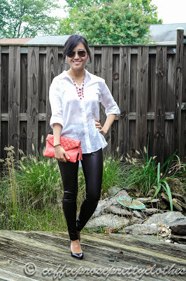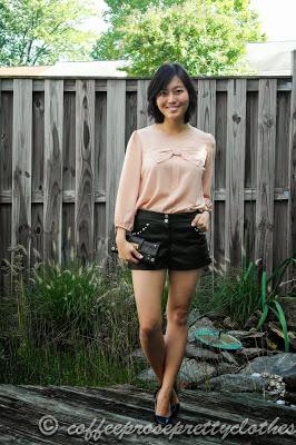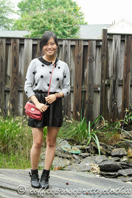 I'm continuing my work-oriented outfits series with this look - my polka dot pencil skirt and and a plain blouse! I know, this outfit is probably not the most exciting look I've ever featured, but to be honest this is the kind of outfit I wear to work quite often. I work in politics so my office is pretty conservative. I try not to go too overboard with my clothes but I think a pop of polka dots and a splash of red is still a toned down look that isn't boring, right? :]