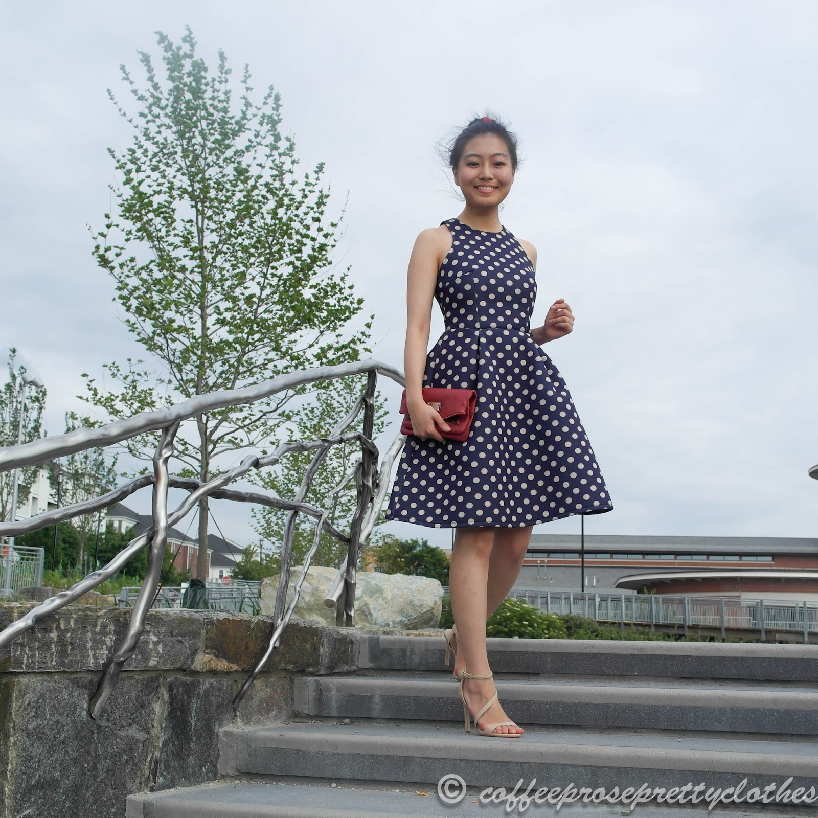 Speaking of transitions, I find this dress to be a great piece to wear during the period between Spring and Summer. This was actually my first clothing purchase from ASOS! I quite love the fit and the scuba material is heavy enough that it doesn't blow up. That's actually a real fear of mine - the metro can bet a bit windy and when I wear more lightweight dresses, I'm afraid I'll pull an accidental Marilyn Monroe but not in a cute way. The material is just heavy enough to ease my worries about flashing strangers in public. Polka-dots are my favorite print ever so this dress is right up my alley!