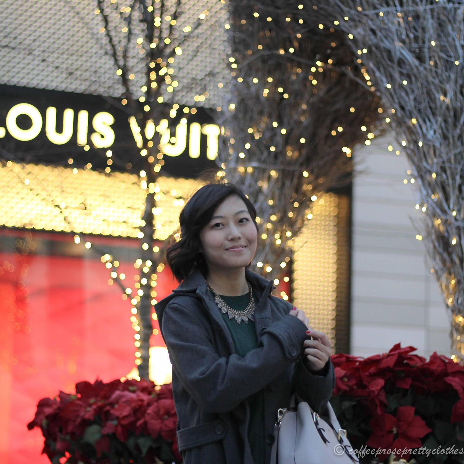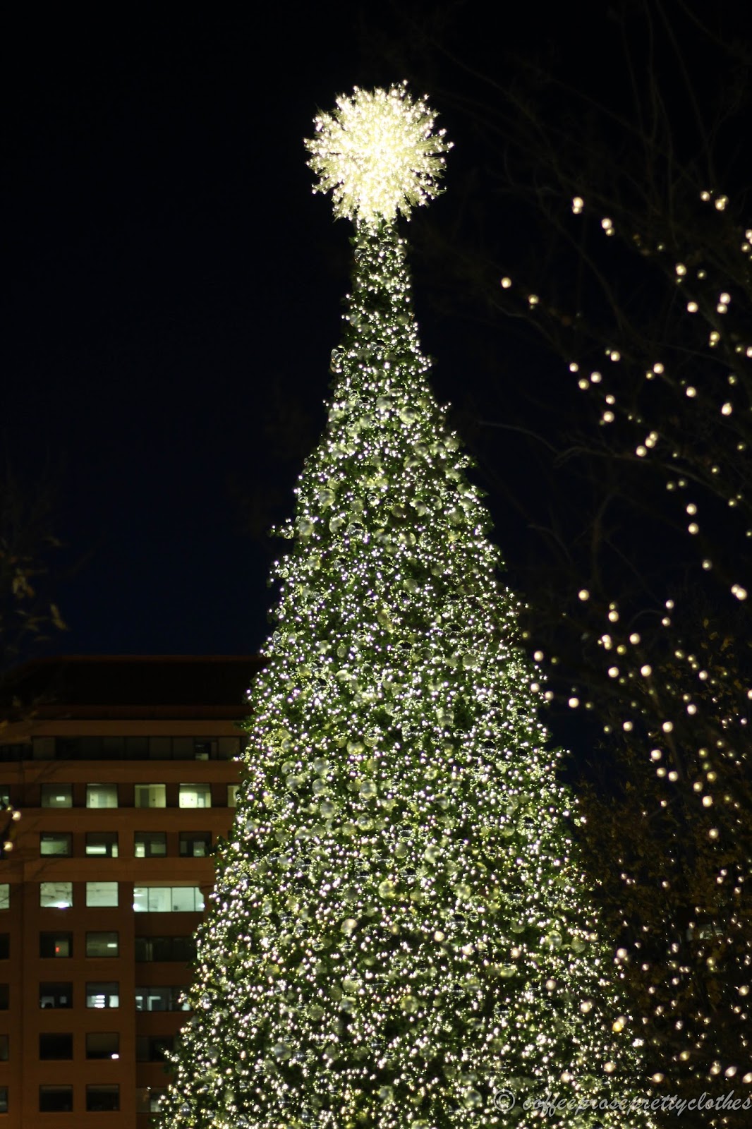 Brian and I had a date night looking at the lights and the Christmas tree at City Center this weekend! City Center is kind of a high-end shopping area with shops the likes of Hermes, Louis Vuitton, and Dior. It was fun to walk around and see the gorgeous way the area was decorated. Our own winter wonderland in the heart of the Nation's Capital! It's obviously very manufactured but it was fun to look around with our cups of hot cocoa and our camera.
