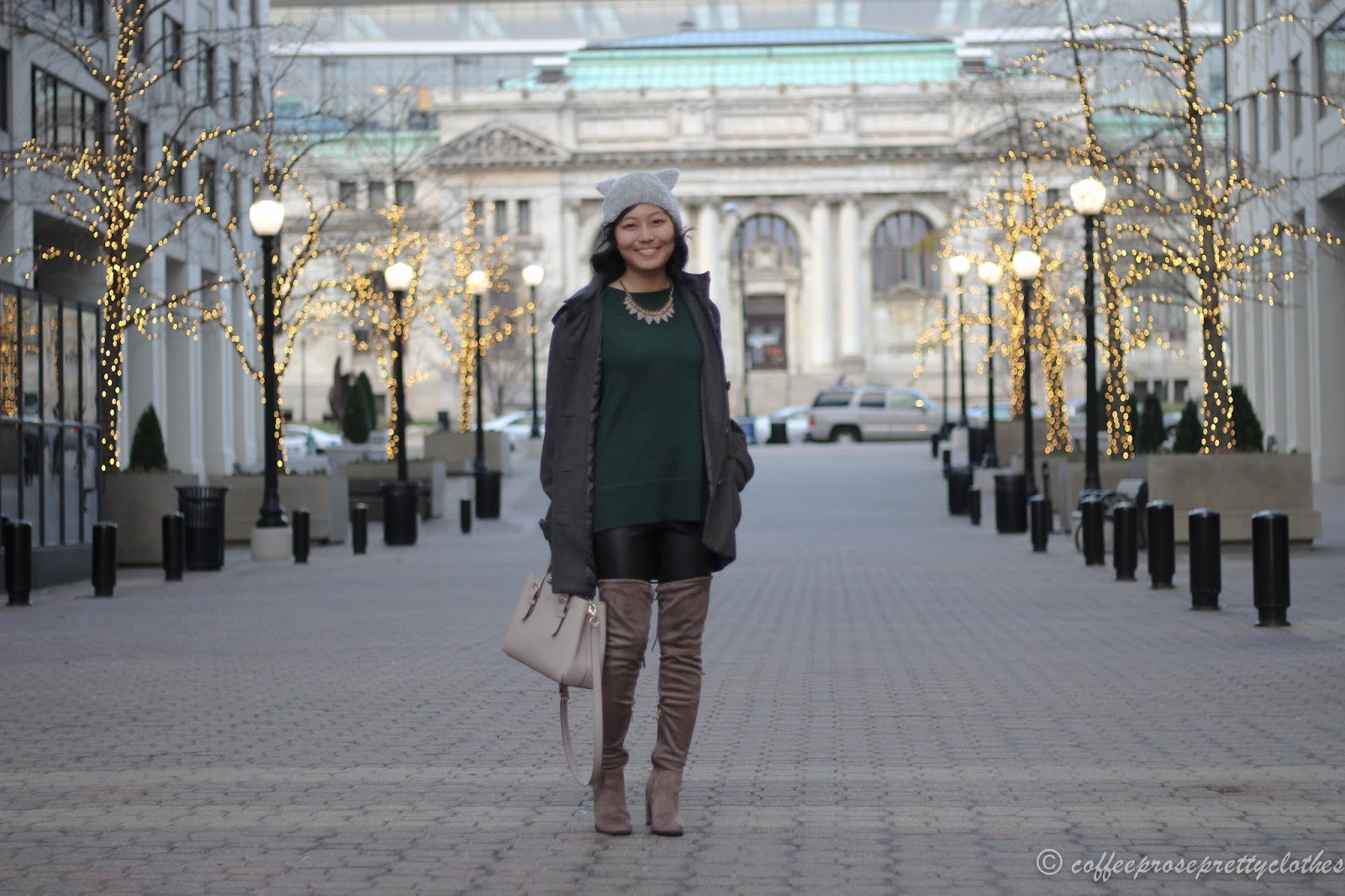 ReplyDeleteWhat a lovely way to spend an evening. I would love to see all the gorgeous creative work with the lights and the decorations. You look fantastic! I absolutely love those over the knee boots! They look amazing with your perfectly layered outfit!