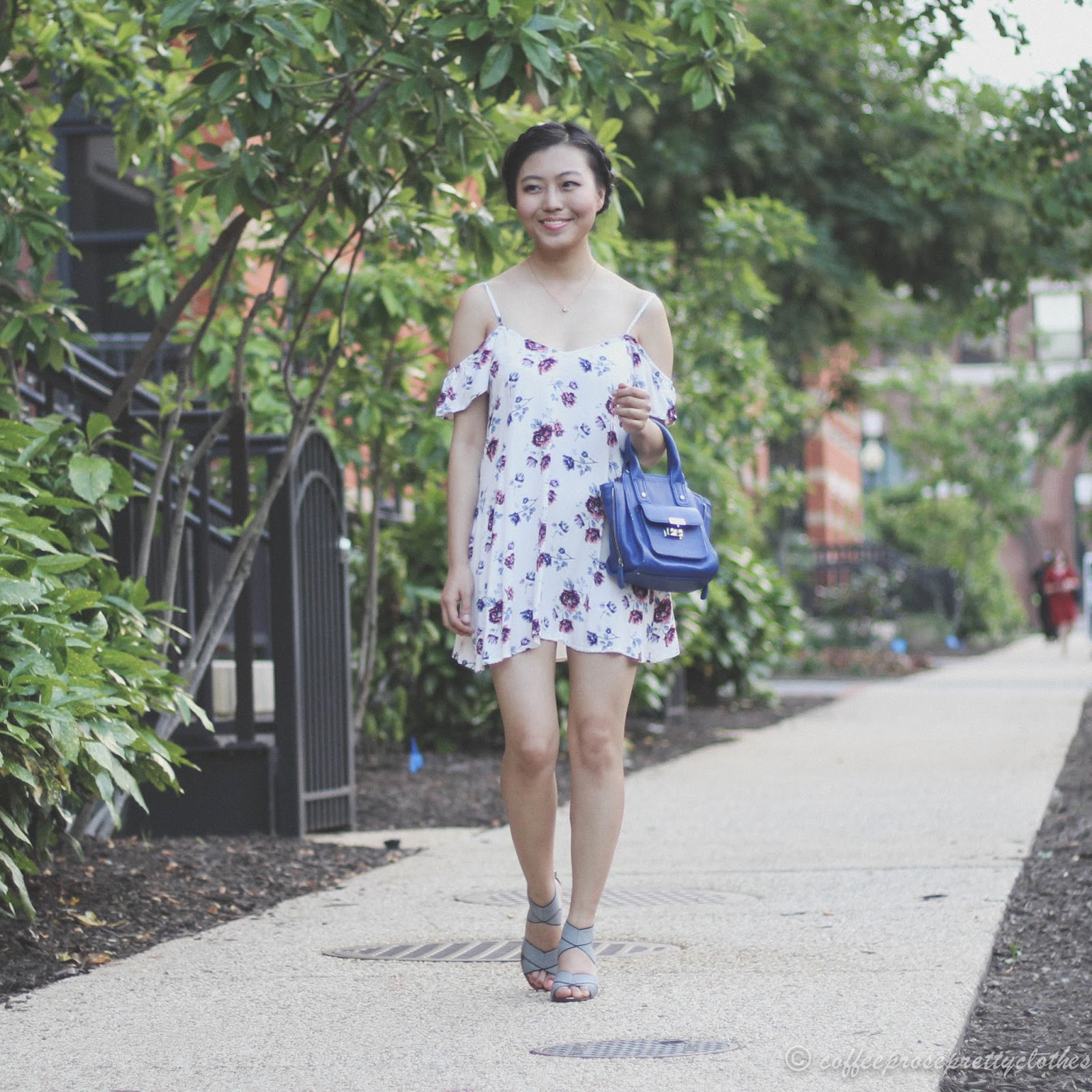 Last week we had a few 90+ degree days. When it gets that hot, I don't bother with getting my hair perfectly styled. I just put them into braids and call it a day. I wore this look out to go and explore my new neighborhood. Despite having moved here almost a month ago, I haven't had a chance to thoroughly see what my new street has to offer. I pulled out this cute floral number (last worn on my trip to Baltimore), put my hair in a faux milkmaid hairstyle, and walked about town. I ended up finding a great Ethiopian coffee place about two blocks away from my building that I know I'll be frequenting. Brian found a French restaurant nearby that he promised he would take me for a date night so that was also a plus!