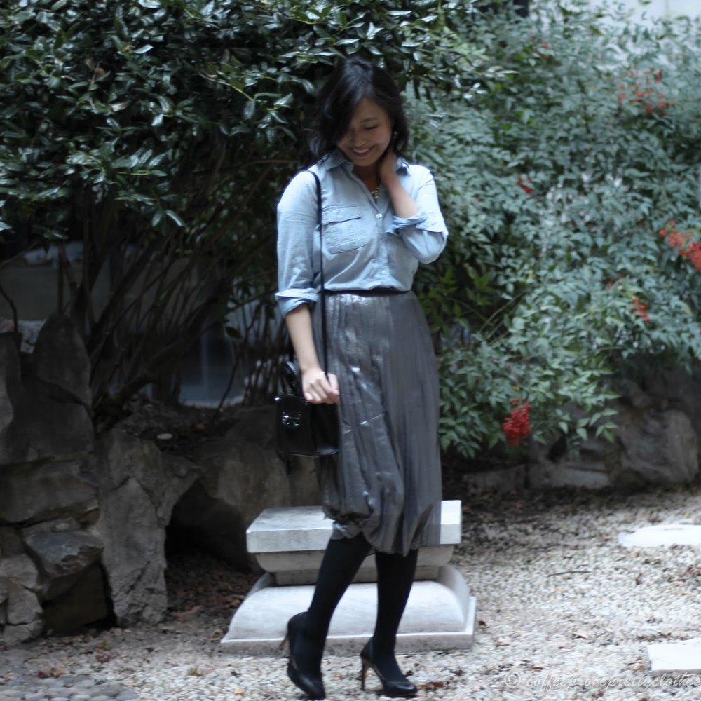 Silver Bells | Metallic Skirt and Chambray Shirt