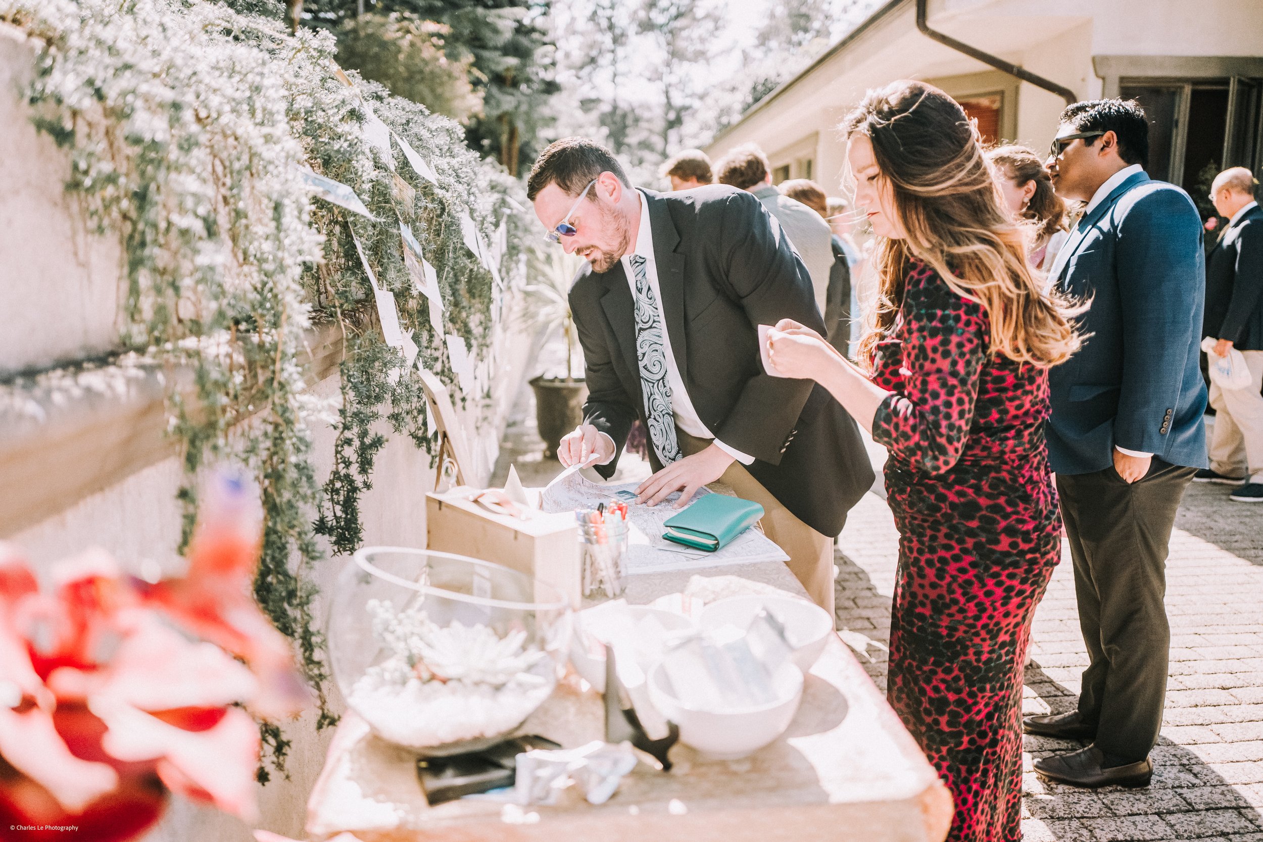 For bouquets, we contacted a local florist in Gilroy I asked for a mix of succulents and big flowers and they did an amazing job! My bridesmaids even took theirs home and replanted the succulents to extend their life. Here’s something that surprised people though: We got fake succulent boutonnieres for the men! I don’t think anyone noticed unless they examined them very closely. I think they all turned out beautiful!