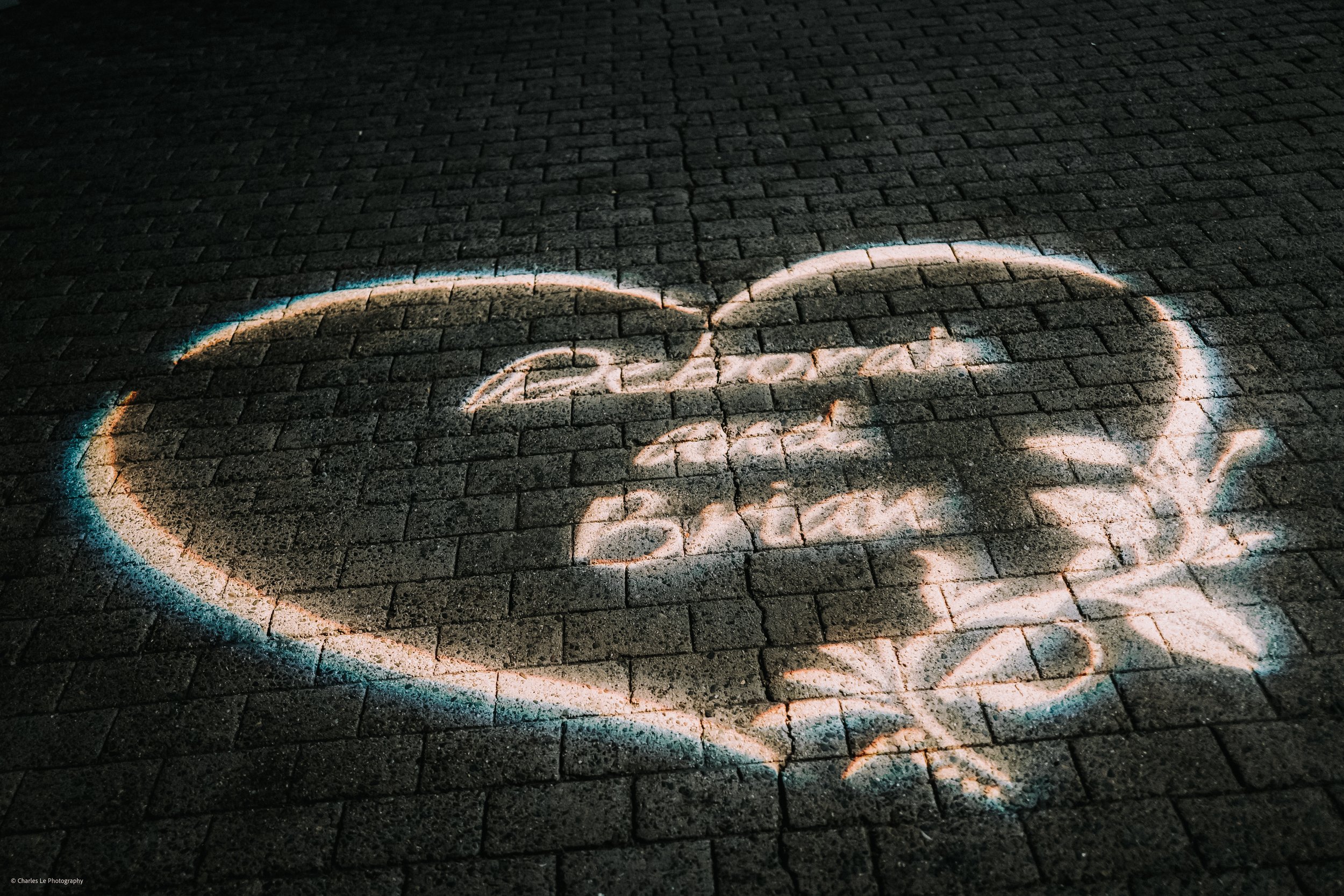 Another one of Brian’s cousins works in A/V so he hooked us up with some beautiful lighting! A lot of vintage Edison bulb-like string lights and even a fun custom decorative light that guests could see on their way out. He was a true miracle-worker!
