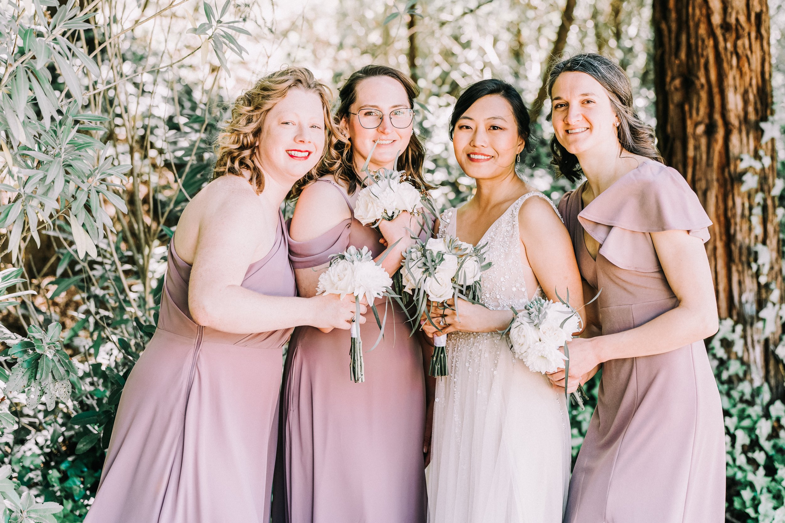 For the bridesmaids, I gave everyone a lot of room for creativity. I knew I wanted a mauve color scheme so I gave them all the shade and asked that they get a dress in as close to the color as they can with the only caveat being that the dresses be maxi-length and not a silky/shiny material. The three of them, in about an hour, picked their dresses from Birdy Grey. They confirmed the color with me and picked three different dresses they liked. I still can’t believe how quickly and efficiently that dress meeting took! They all looked lovely!