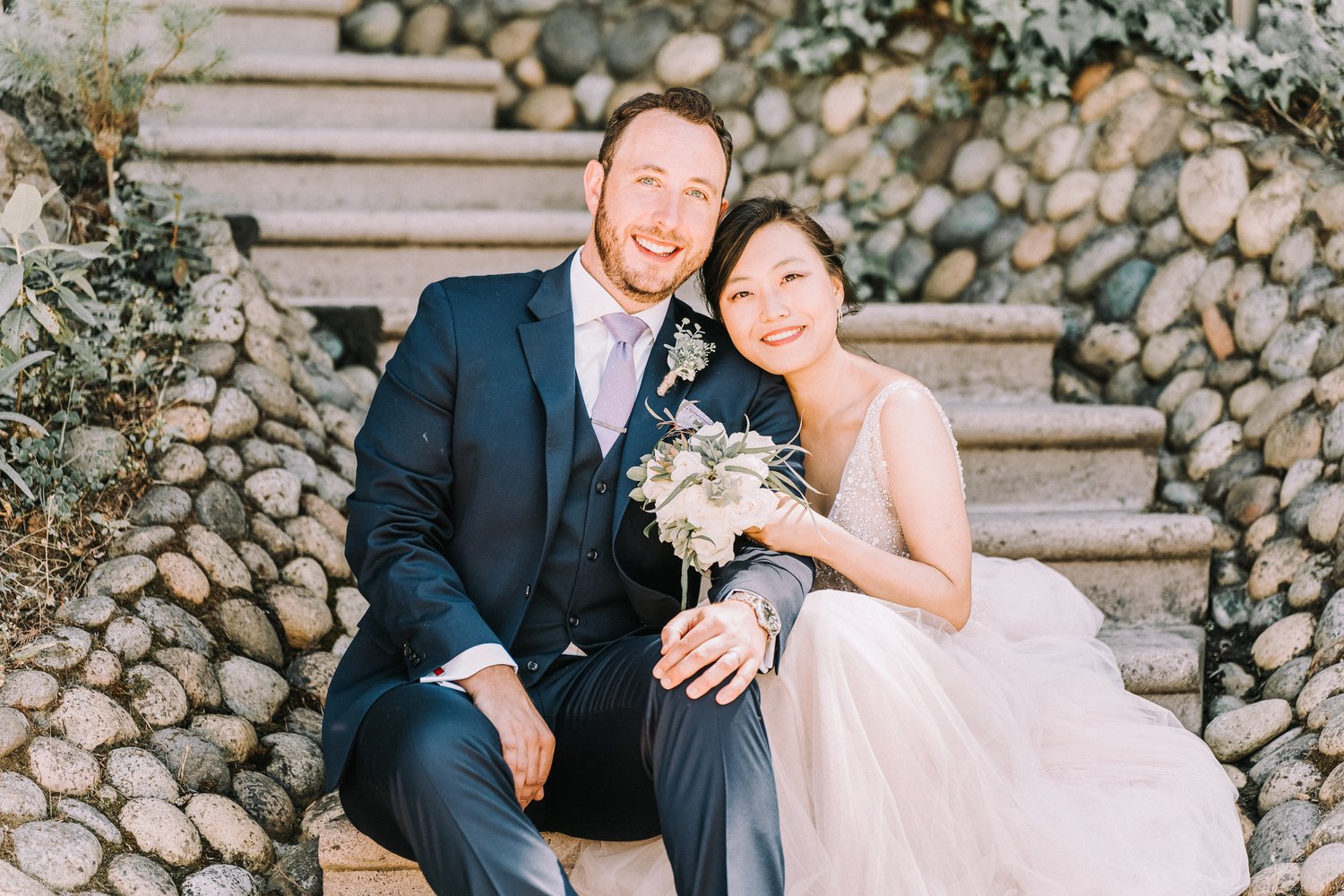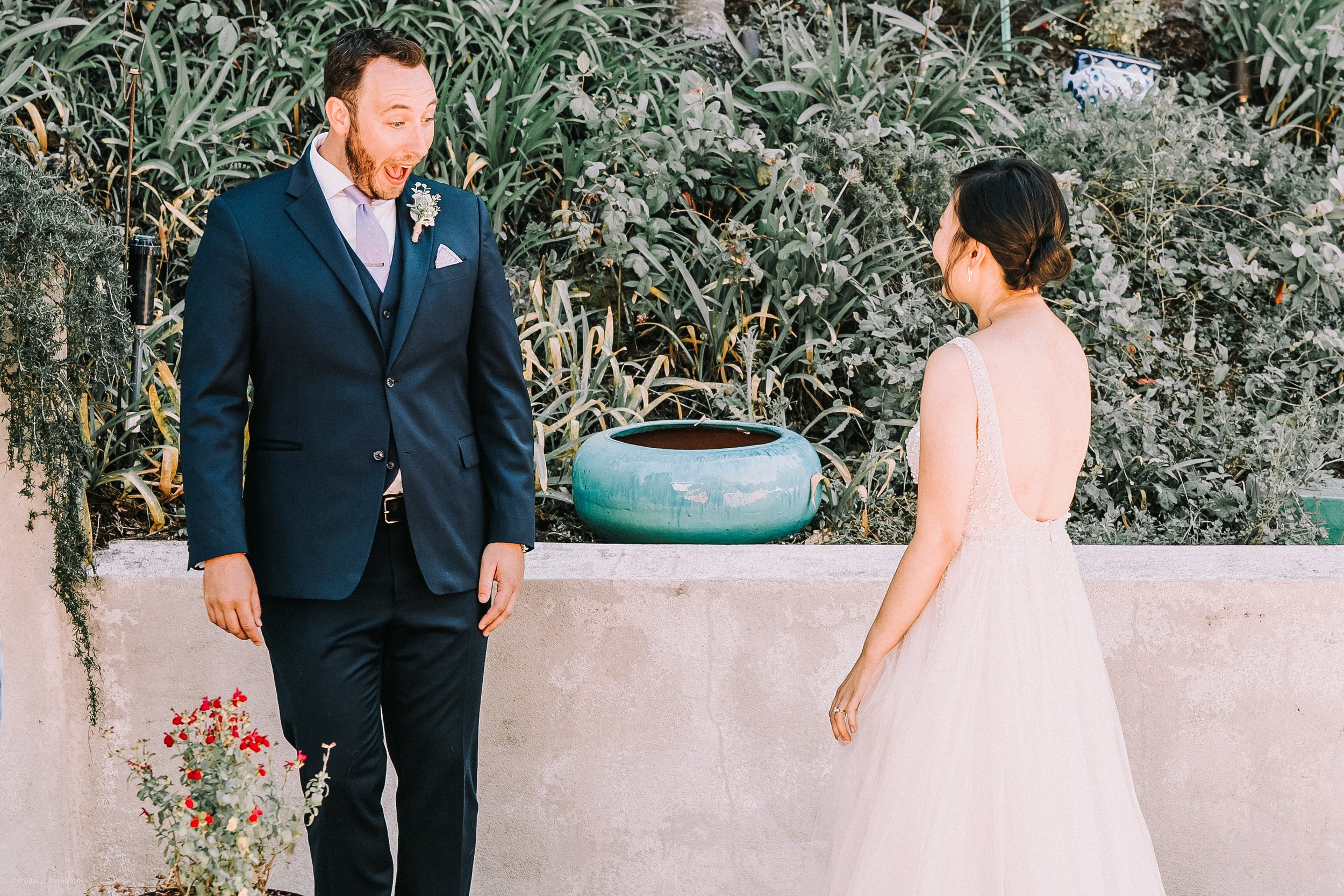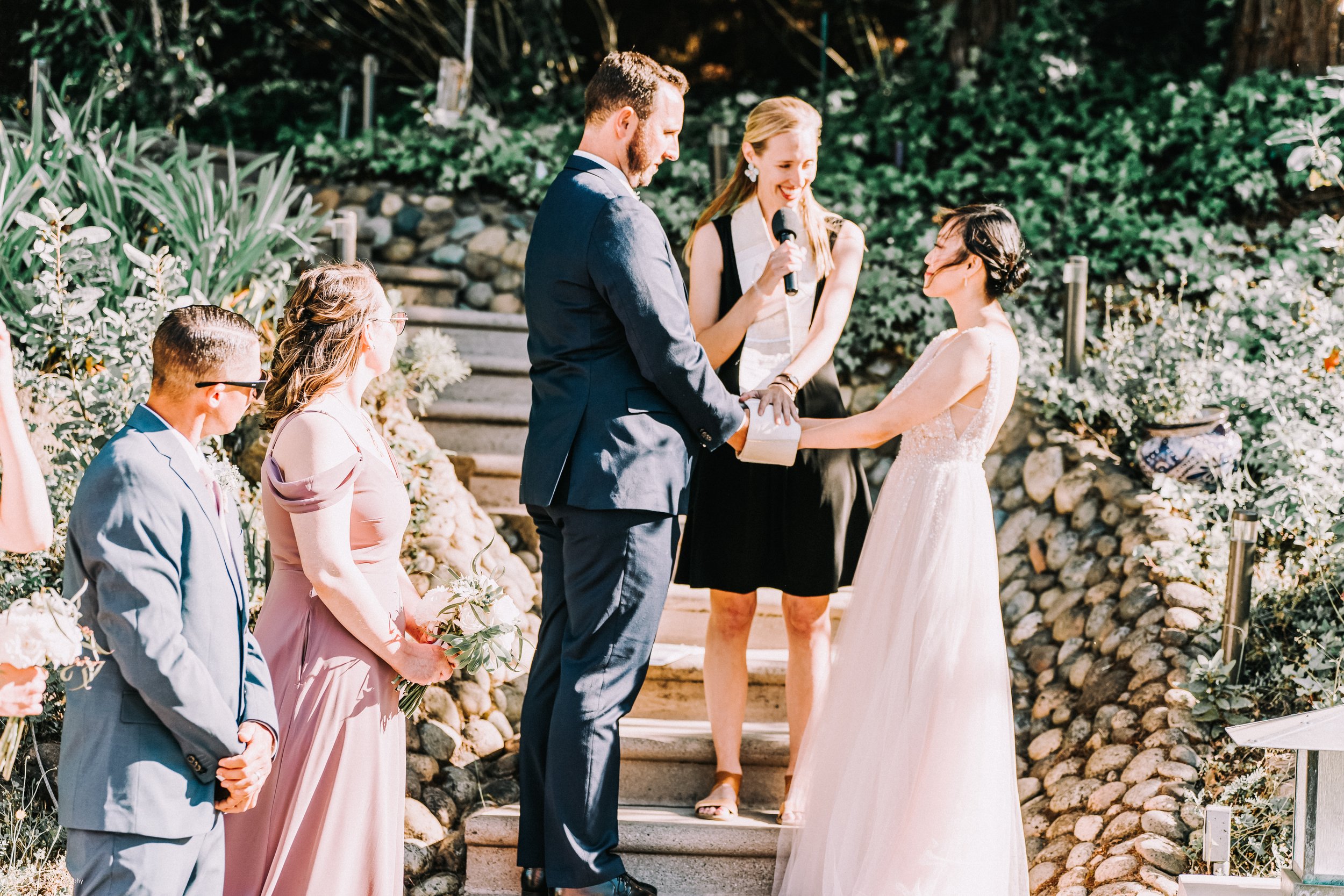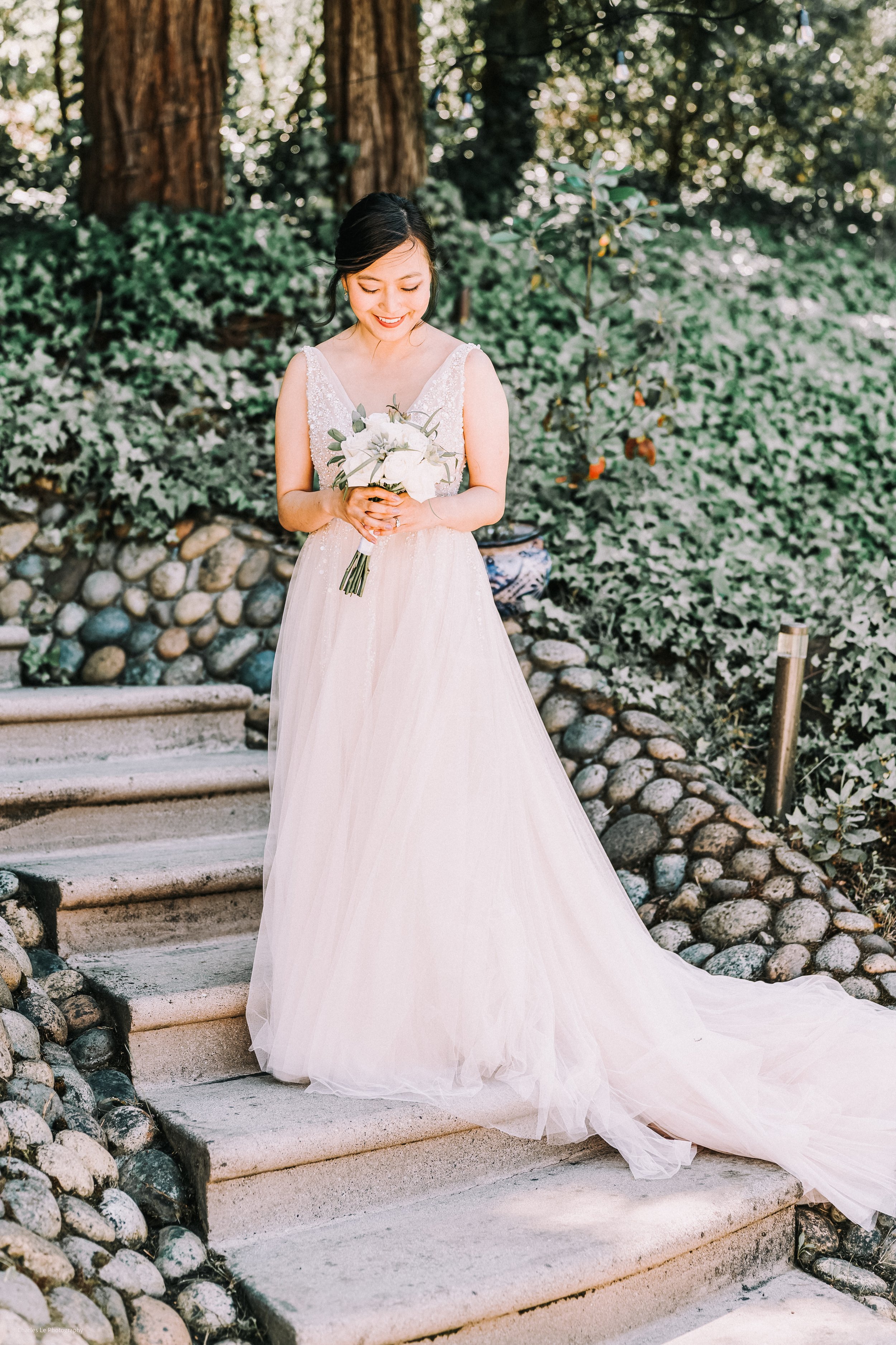 We got married in Gilroy, California at my husband’s aunt’s home. To be honest, we say it’s a house but it kind of looks like a castle - the place is enormous! They have the most beautiful backyard, complete with a bocci ball court, redwood garden, pool, and a fountain. Brian’s brother also got married there years ago and it almost feels like a family tradition at this point. Planning a wedding from the other side of the country was difficult but luckily we had a lot of family members who stepped up to help (and they are wonderful!)