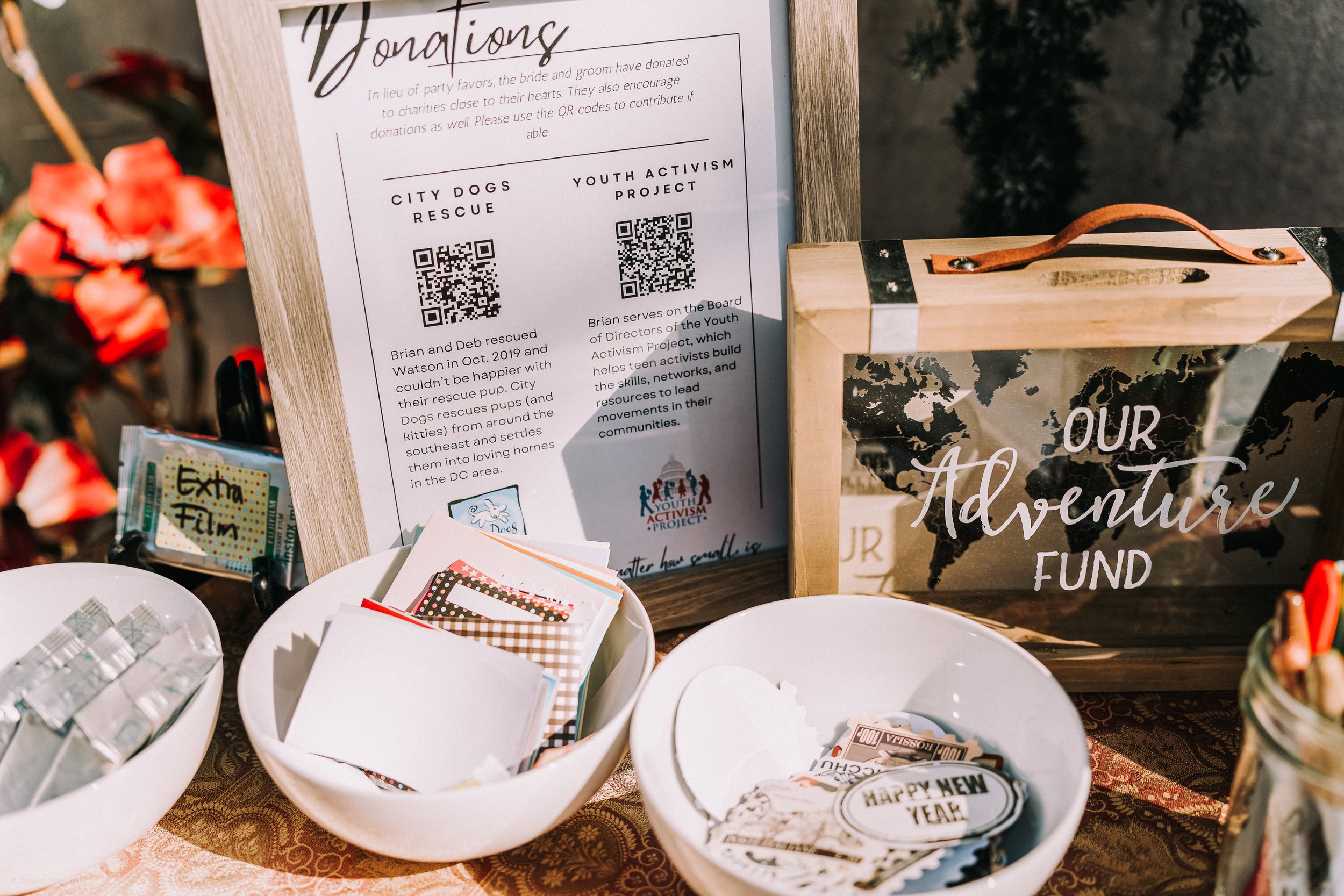 We decided not to do party favors and instead donate to two organizations that are important to us: City Dogs Rescue and Youth Activism Project. We put out a sign at the entrance where we made the announcement and included a QR code so that guests could choose to donate to these organizations as well.