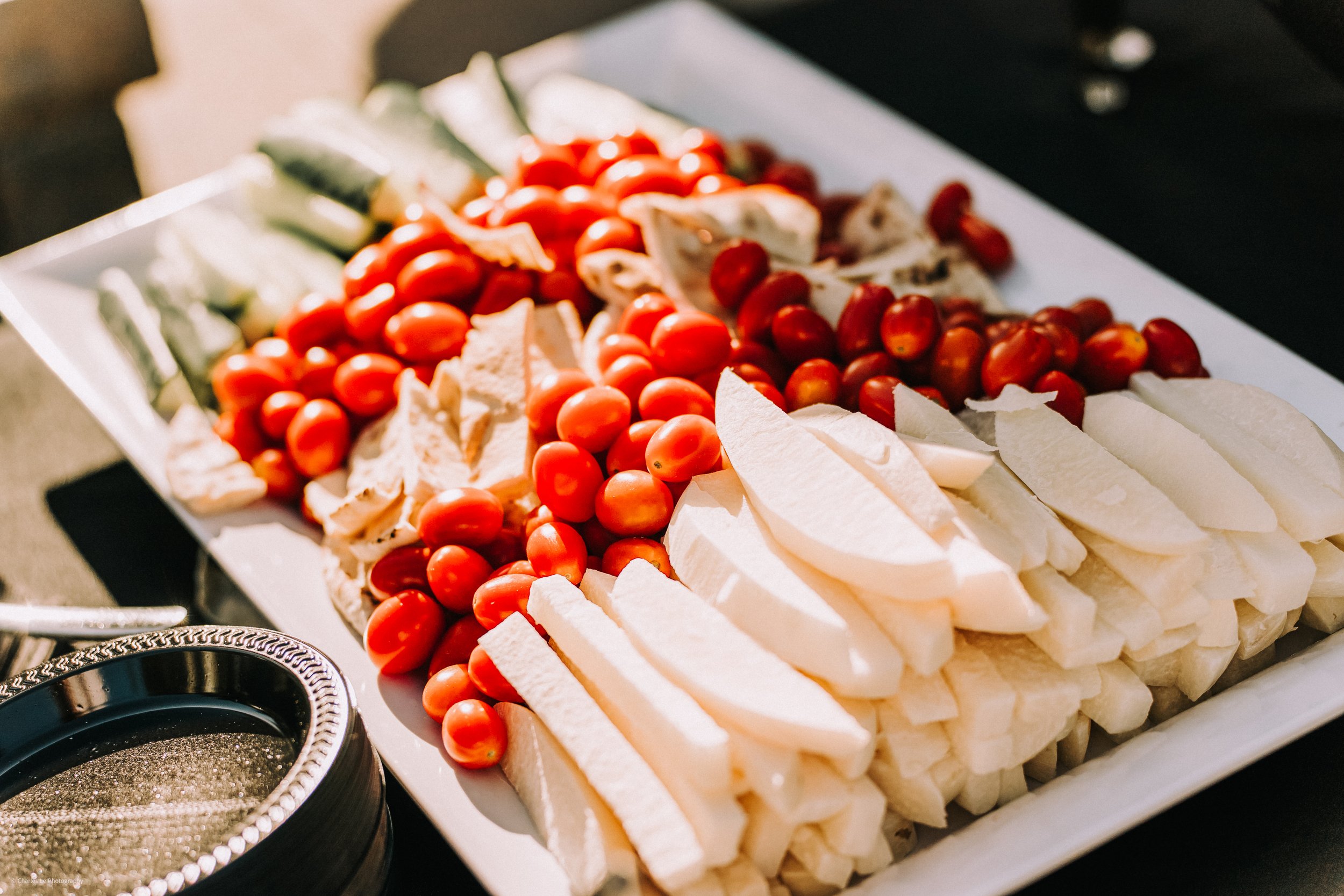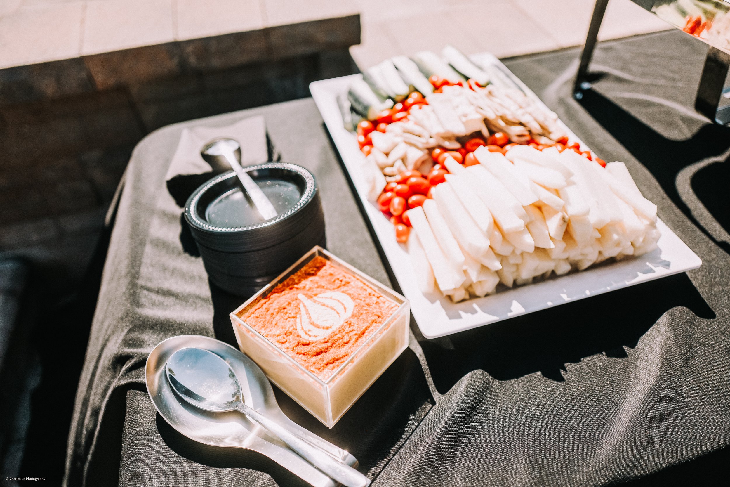 For cocktail hour, we had his/hers cocktails. His, being a classic manhattan, and hers being a peach soju-tini. Soju, for those who are unfamiliar, is a Korean distilled rice spirit. It’s similar to vodka, though not as strong, and doesn’t burn going down. For snacks, my mother-in-law hired a local culinary school that trains at-risk youth in the culinary arts.